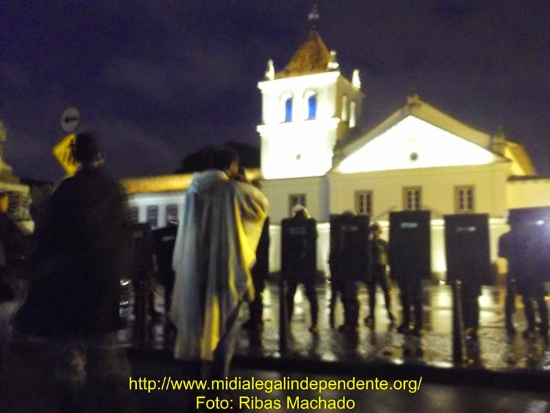 Mas... Como já estávamos lá, molhados e sabendo que uma possível volta pra sede levaria de 2 a 3 horas, respiramos fundo e avançamos em frente até chegar na cobertura do lado esquerdo, onde estavam os manifestantes...