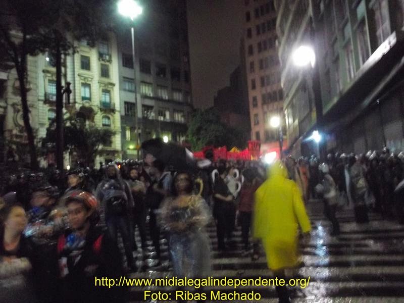 Lhes confesso que o M.L.I pretende estar em todos os futuros "Grandes Atos Contra o Aumento", confesso que sei que o tempo chuvoso e o caos que a chuva ocasionou no trânsito, tornaram este ato atípico, mas confesso também que saí com uma sensação ruim deste ato e do futuro desta causa...Obs: Aqui vale contar uma passagem (pra mim) engraçada, pois enquanto, já sozinho eu esperava no ponto, surgiram dois PMs e ficaram parados numa diagonal atrás de mim, até aí tudo bem... Aí chegou o ônibus (que era o meu) eu entrei e, com o rabo do olho, vi que os dois também iam entrar... Passado este "olhar 43" (entreguei a idade agora) dei boa noite pro motorista (pois sou muito educado) e olhei os passageiros... Aí veio o "susto" pois sentadinhos (alguns de pé) tinha nada mais, nada menos que uns 10 PMs com capacetes, coletes e cassetetes... Quase saí pra ver se tinha entrado em algum ônibus errado, mas os outros dois vinham subindo e achei melhor entrar e achar lugar pra sentar... Fui olhado de cima abaixo, quis quebrar o clima soltando um "por hoje é só", ao que um dos que estavam sentados, respondeu "nem fala", aí achei lugar, sentei e foi só isso...