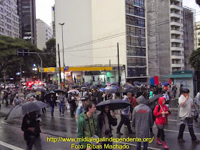 Lhes confesso que o M.L.I pretende estar em todos os futuros "Grandes Atos Contra o Aumento", confesso que sei que o tempo chuvoso e o caos que a chuva ocasionou no trânsito, tornaram este ato atípico, mas confesso também que saí com uma sensação ruim deste ato e do futuro desta causa...Obs: Aqui vale contar uma passagem (pra mim) engraçada, pois enquanto, já sozinho eu esperava no ponto, surgiram dois PMs e ficaram parados numa diagonal atrás de mim, até aí tudo bem... Aí chegou o ônibus (que era o meu) eu entrei e, com o rabo do olho, vi que os dois também iam entrar... Passado este "olhar 43" (entreguei a idade agora) dei boa noite pro motorista (pois sou muito educado) e olhei os passageiros... Aí veio o "susto" pois sentadinhos (alguns de pé) tinha nada mais, nada menos que uns 10 PMs com capacetes, coletes e cassetetes... Quase saí pra ver se tinha entrado em algum ônibus errado, mas os outros dois vinham subindo e achei melhor entrar e achar lugar pra sentar... Fui olhado de cima abaixo, quis quebrar o clima soltando um "por hoje é só", ao que um dos que estavam sentados, respondeu "nem fala", aí achei lugar, sentei e foi só isso...